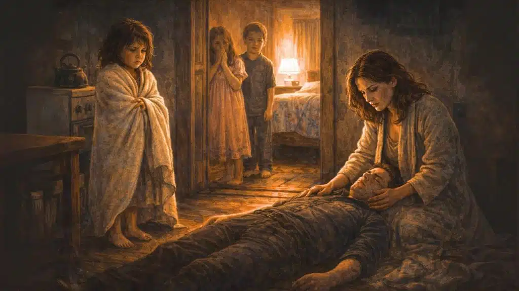 — Папа… — прошептала она. — Папа на полу лежит. Не встаёт. Катя плачет, а он не встаёт…