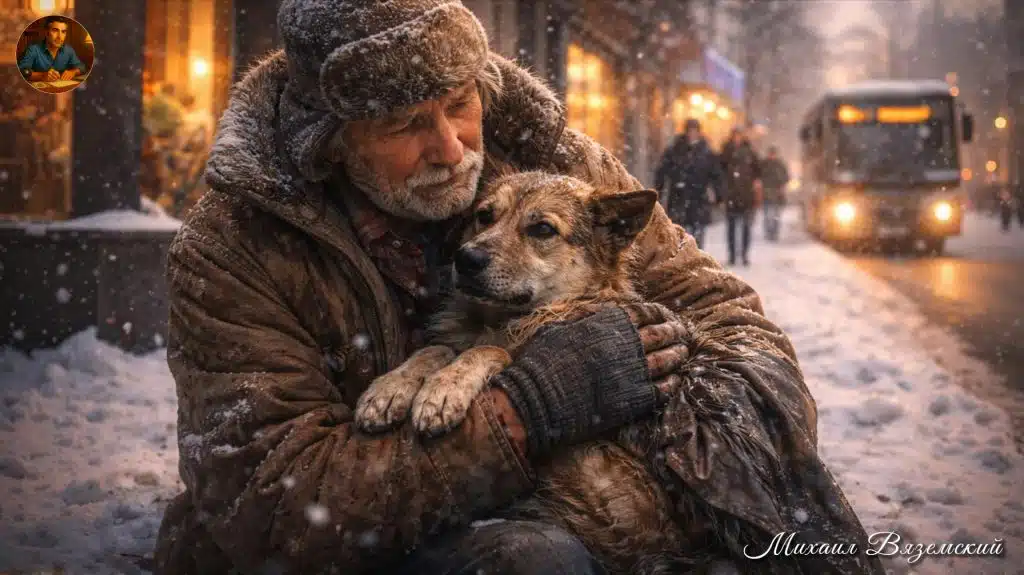 Виктор уже хотел вернуться в офис, когда из подошедшего автобуса вышел старик в потёртом пальто и валенках. Он сразу заметил собаку, подошёл, присел на корточки. Погладил по грязной шерсти. Потом, кряхтя, поднял пса на руки и встал на остановке.