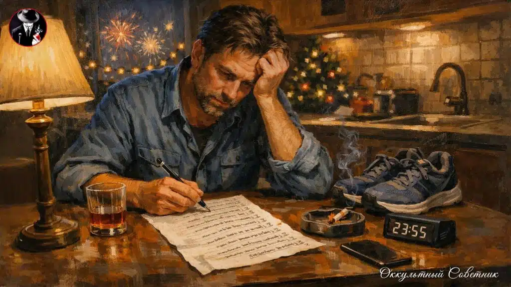 Первого января просыпается с похмелья в двенадцать. Думает: ладно, со второго начну. Второго тоже не получается. Третьего берёт себя в руки, встаёт в семь (не в шесть, но хоть что-то), выходит на пробежку — и через пятьсот метров чуть не умирает. Возвращается, закуривает. Потому что стресс.
