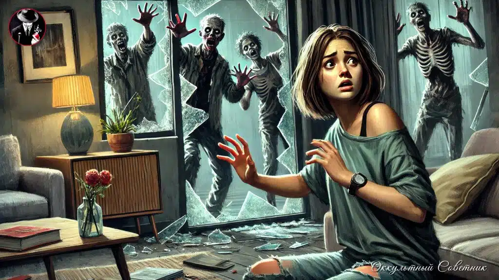 Дрожащими руками она посветила телефоном в окно и тут же отпрянула: с той стороны стекла на неё смотрело искажённое человеческое лицо. Серая кожа была покрыта трупными пятнами, глаза мутные, с расширенными зрачками, а рот… Рот был измазан чем-то красным и влажным.